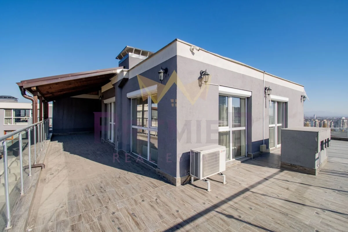 Имотът е с прилежащи тераси от 166м2. На терасата има готова ВиК инфраструктира за монтаж на джакузи.