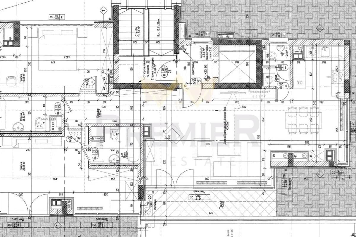 Апартаментът е с площ от 150кв.м., като има допълнително тераса от 91кв.м.