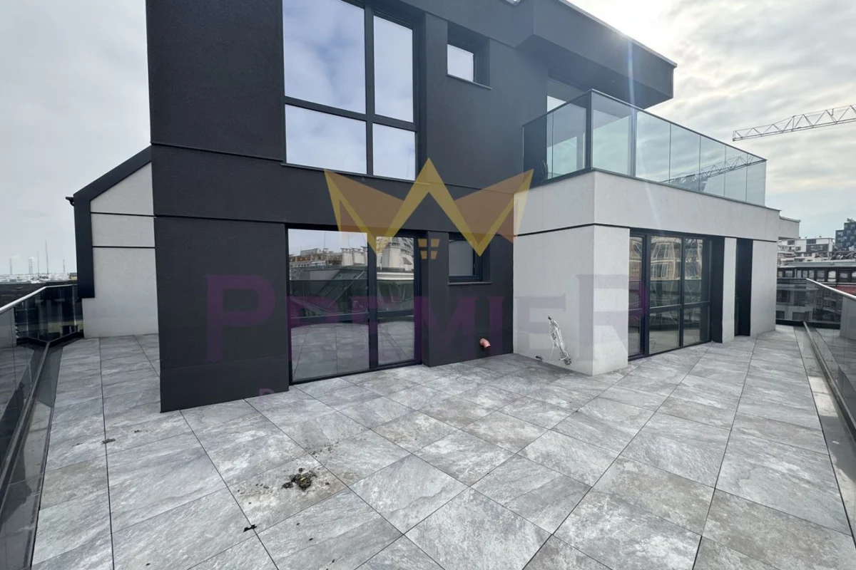 Апартаментът е с площ от 127м2 и прилежащи тераси от 55м2.
