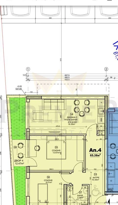 Имоти Премиер представя просторен тристаен апартамент, разположен на партерен етаж в новопостроена сграда с АКТ 15, намираща се в квартал „Триъгълника“, София. Имотът предлага идеалното съчетание между модерно удобство и уют с английски двор, който добавя допълнителна стойност и чар.