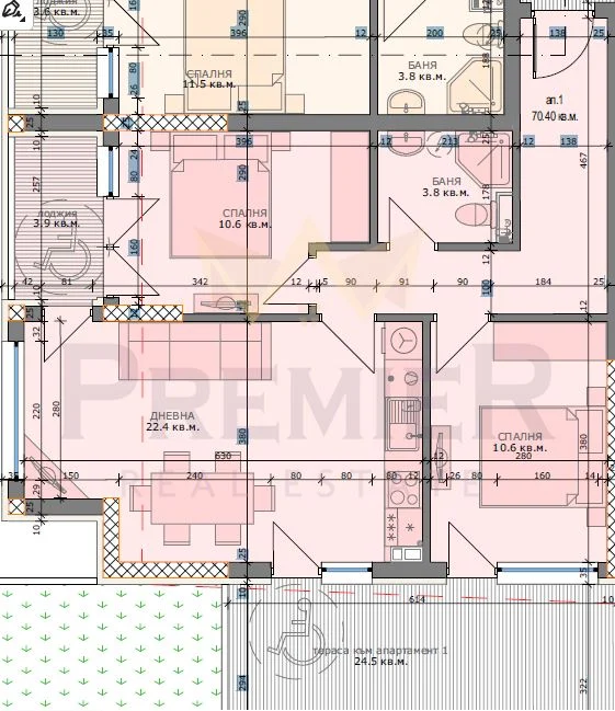 - Тераса – 24.5 кв.м.