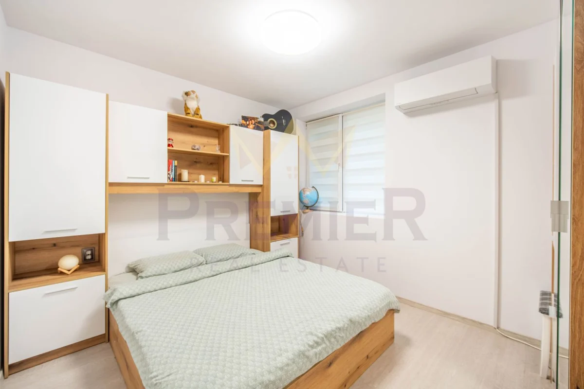 Имота има следното разпределение : входно антре, 2 спални, кухня и трапезария, баня + тоалетна.
