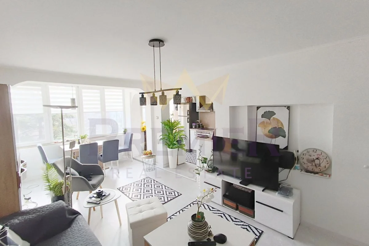 Имоти Премиер предлага за продажба прекрасен тристаен апартамент, напълно обзаведен и готов за нанасяне, намиращ се в кв. Чайка.