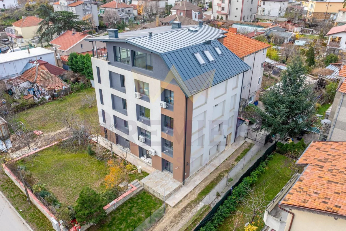 СГРАДАТА е изпълнена с материали от най-висок клас. Състои се от 8 апартамента и разполага с модерна визия с френски прозорци /дограма Rehau Synego троен стъклопакет “Energy” бяло Ка стъкло/, а за завършването на общите части са използвани висококачествени материали / египетски мрамор и ковано желязо/. Положена е шумо и топлоизолационна система 16 см . Силикат-силиконова фасадна мазилка с висока паропропускливост и самопочистващ се ефект. Монтирана е и топлоизолация на всички открити участъци с оглед постигане на висока енергийна ефективност и минимална нужда от отопление.