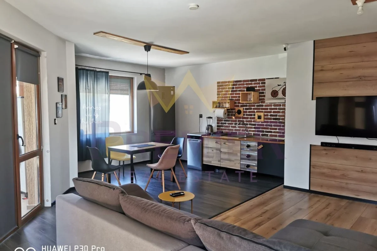 Разпределението е както следва: широк коридор, прекрасна дневна с кухня и трапезария, две самостоятелни спални, баня и тоалет, килер и две остъклени тераси с Термо панели.